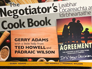 Some of the Sinn Féin negotiation team at Stormont: Michelle O'Neill, Seán MagYidhir, Mary Lou McDonald, Conor Murphy, Pádraic Wilson, Carál Ní Cuilín, Gerry Kelly, Declan Kearney, red Howell and Stephen McGlade The reality is that Ted, Padraic, Big Bob, Sean, and Marty have been part of the Sinn Fein negotiating team for a very long time. Mr. Martin knows some of them. Ted was part of the team which produced the two seminal documents Scenario for Peace in 1987 and Towards a Lasting Peace in Ireland in 1992. At different times he has been part of delegations which met with John Bruton, Dick Spring, Pronnsias de Rossa, Leo Varadkar, Charlie Flanagan, Simon Coveney, Tony Blair, Gordon Brown and Theresa May. He has also met Bertie Ahern, Brian Cowan and Micheál Martin and the DUP and UUP. Ted worked closely with Tony Blair’s former Chief of Staff Jonathan Powell and attended meetings in Downing Street and Hillsborough Castle with Micheál Martin. Pádraic and Marty too were often part of these delegations and often held meetings outside of the negotiating events with senior Irish government officials. Ted and Pádraic also have deserved reputations for the provision of first class meals and pastries during negotiations. We have shared these with some of those above, including with Simon Coveney. Just before Christmas 2018 I published ‘The Negotiators Cookbook” co-authored with Ted and Pádraic and with recipes in the main from both. The Negotiators Cookbook was very well publicised. Ted and Pádraic were widely credited for their culinary skills. Hardly “shadowy figures”.The single most important aspect of the Stormont House negotiation in 2014 was the effort to address the legacy issues. The Sinn Fein working group handling this important issue included Gerry Kelly MLA, Sean Murray, Caral ni Chuilin MLA and Bobby Storey. All former political prisoners. The then British PM David Cameron was present in Stormont House for some of the last hours of that negotiation. So too was Charlie Flanagan. When a roundtable meeting was held to conclude on this issue, Sean Murray represented Sinn Fein. He played a pivotal and constructive role in this as he has in resolving many of the contentious Orange marches which used to create serious difficulties in Belfast.