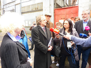 I exited despondently stage left, as sheepishly as Micheál Martin after Mary Lou scalped his arse. Out the back of Ard Oifig the old Dominic Street flats, now demolished, are a building site. I made my way gingerly through the muck. A burly workman greeted me.
