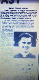 The Upper Springfield area of west Belfast suffered many traumatic events during the years of conflict. The area was the target of British military invasion and occupation, pogrom and refugees. Scores of its citizens were killed. Many more were injured. Hundreds spent years in British prison camps and gaols. The British Army used every weapon in its formidable arsenal to try and intimidate and terrorise the people of the Upper Springfield. Brutal beatings, the frequent use of CS gas, the indiscriminate firing of rubber and plastic bullets, arbitrary arrests and torture, were all part of the daily experience of the civilian population. So too were attacks by unionist death squads, working in collusion with, and under the cover of British Army and RUC actions.One legacy of this British government counter-insurgency strategy is currently playing out in a Belfast Coroners Court where 10 of the 11 citizens killed during the Ballymurphy Massacre in August 1971 are seeking the truth about the events surrounding the murder of their loved ones. 11 months later, on a bright Sunday evening on 9 July 1972, and just yards from the scene of the Ballymurphy Massacre, five more civilians were shot dead by British troops. That evening British Army snipers were hiding in what was then Corry’s timber yard overlooking the Springhill estate and the Westrock Bungalows. The Springhill estate and Westrock Bungalows represented some of the worst public housing existing at that time. The Springhill estate was a concrete, soulless estate with no public facilities. The Westrock Bungalows were temporary aluminium structures. They were built in the 1940s and 40 years later were still being used by large families. By then they were in a poor state of repair. The bungalows were cold, damp structures.The Springhill Massacre reflects in many ways the events the previous year in Ballymurphy. All those shot dead were civilians. The British claimed that the victims were gunmen or had been caught in crossfire during a gun battle. None of this was true. Three of those killed were children, one was a father of six and the last was the second priest from the greater Ballymurphy area to die in the conflict.