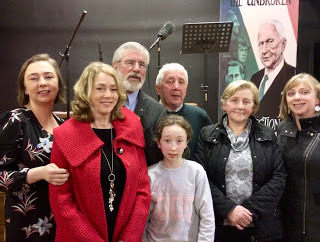 With some of John Joe's family Thirty years ago John Joe had been ill for a time and I called to see him and Mrs. McGirl. I was on my own. He asked me to take him to Garadice Lough. After I was fed and watered I drove him there. It was a bright sunny late summers day. John Joe sat with me by the lough. At one point he actually took off his shirt. I remember he was wearing a white simmet. He really enjoyed the sun on his bare arms and face. He knew he was dying.He said he was sorry he wouldn’t live to see Ireland united but he felt great progress had been made and that he was glad to be part of that. On the way back here to Ballinamore he said he had great confidence for the future.Martin McGuinness like me loved John Joe. In a tribute to him Martin described John Joe as a “progressive thinker, always prepared to consider, support and propose new ways for the Republican Movement to advance. He wasn’t prepared to stand still or hold to old outdated tactics which were incapable of developing the struggle on all fronts… He was an extraordinary man, an inspiration to everyone who knew him. We treasure his memory”.