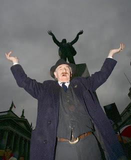 Jer as Big Jim Larkin I have been at too many funerals since Christmas. Ted says it’s because we are people of a certain age. Former Dundalk Sinn Féin Councillor Harry Todd, Arthur Mullen, Armagh City Sinn Féin activist Dympna McCague (Corrigan) and actor and trade union activist Jer O’Leary all passed. I never got to the funeral of David Cullinane’s mother Bernadette. Or H Block escapee Seamus McElwaine’s mother. And my friend Jane Crane didn’t have a funeral. Instead her ashes were scattered on Errigal. Great human beings all of them. I am blessed to have known them. My condolences and sympathies to all of their families. I was at Jer O’Leary’s funeral along with Mary Lou McDonald, Micheál Mac Donncha, Lucilita Breathnach and many others from Sinn Féin. There were other political activists, people from theatre and cinema, trade unionists, friends and neighbours. Jer’s coffin was draped in the Starry Plough and the procession included some of his finest trade union banners. I have known Jeremiah ‘Jer’ O’Leary for decades. He was a big man. Big in body. Big in spirit. Big in voice. Most people have heard of Big Jim Larkin. His name is synonymous with that of James Connolly and the 1913 Dublin Lock-out. Jer’s performance as Larkin brought the character and strength and voice of Larkin alive to generations who never knew him. In countless pageants, Sinn Féin Ard Fheiseanna, community events and plays Jer revelled in the part of Larkin. With arms outstretched, head raised and voice booming he was the embodiment of Big Jim.