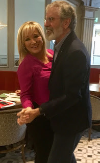 The piped music in the Balmoral Hotel was playing a jazzy tune. I asked Michelle O’Neill for a dance before she, Mary Lou, Elisha McCallion and I went into the packed hall for the AGM of the Cúige Uladh (Sinn Féin’s Northern Executive). Michelle jumped up, swung into my arms and we were off. Ted and Gerry Kelly have always been jealous of my moves on the dance floor. With good reason. Michelle and I floated around the hotel foyer like gossamer shadows caressed by the wind. Mary Lou and Elisha looked on enviously. Some might say it was also my last dance as Uachtarán Shinn Féin but never say never. It’s still two weeks to the special Ard Fheis on February 10th. The opportunity for another dance is always possible. If Michelle is very good we might give it another go. Or maybe Arlene will oblige. A last tango.