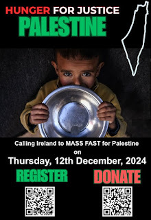 Well done toall of those – 1600 at the last count – who last week participated in theHunger for Justice fast - Troscadh ar son na Córa – in support of the people ofPalestine. Over €100,000 has been raised. As well as individual contributionsscores of vigils and protests were held across the island of Ireland.