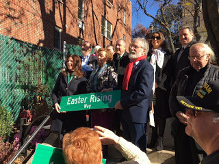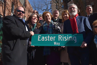 This connection between Ireland and Irish America was clearly evident last Saturday morning in New York. Under a beautiful blue sky several hundred grassroots activists came together to celebrate the centenary of the 1916 Rising. Council woman Elizabeth Crawley had proposed that a pedestrian thoroughfare in Maspeth in the Queens Borough be named ‘Easter Rising Way.’ It was a great initiative and New York Council approved it. And as the succession of speakers reminded us Irish America has been an integral part of the Irish story and of the struggle for freedom for hundreds of years.