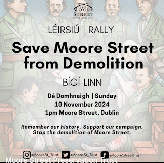 ThisSunday the Moore St. Preservation Trust is holding a rally in Moore St. toprotest against the decision by An Bord Pleanála. The rally will takeplace at 1pm and I would encourage all of those who believe that thisiconic 1916 historic site should be protected to join with us this Sunday.