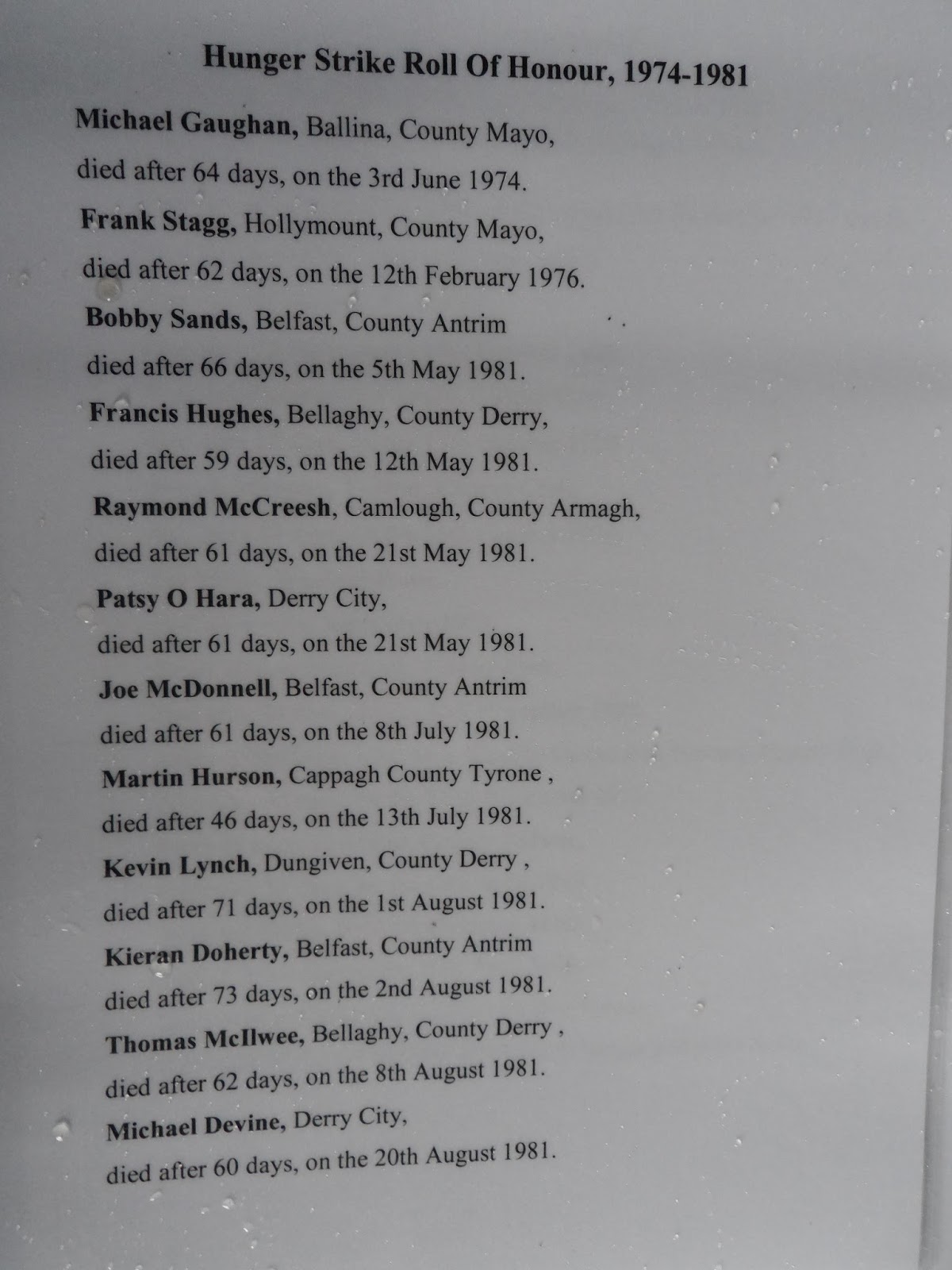 It was a poignant moment. Friday was October 2nd. It was almost 34 years to the day - October 3rd 1981 - when the hunger strike ended.