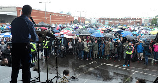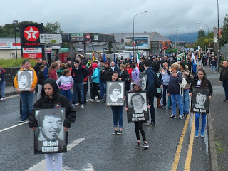 For a brief period the rain eased as we walked through Dundalk on Sunday but for most of the time it lashed. Thousands of brave souls, many soaked to the skin despite all kinds and sizes of umbrellas and coats, and led by relatives of the hunger strikers, walked the two miles from the assembly point to the centre of Dundalk where this year’s National Hunger Strike march and rally where held.The talk of many was of similar marches in the past, often in similar cold and inclement weather, during the long years of the blanket protest in the H-Blocks and in Armagh Women’s prison.