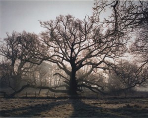 This is a huge Oak tree – a pendunculate Oak (quercus robar) - from the Charleville Forest estate at Tullamore in County Offaly. It is estimated to be aged between 400 and 800 years old. Locally it is well known and it is said that generations of Tullamore inhabitants have climbed its branches. It stretches 50 meters from the tip of one branch to the tip of another.