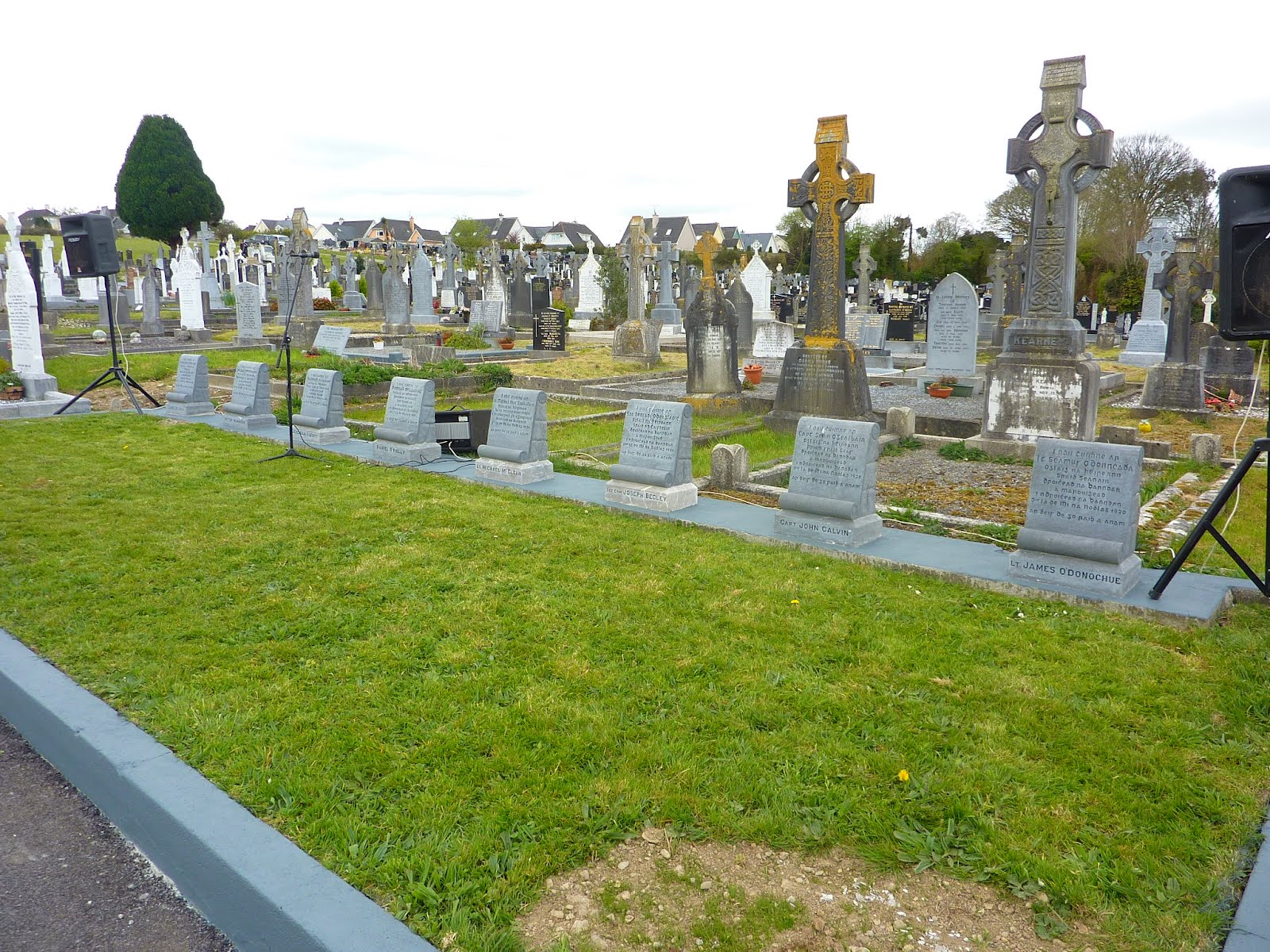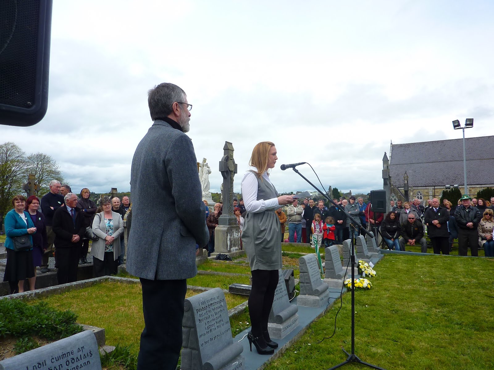 The republican plot in Bandon is in the cemetery adjacent to St. Patrick's Church. When this blog and Rachel McCarthy, the local Councillor, came out of mass there was already a good crowd waiting. We were led the 100 metres from the cemetery gate to the graveside by the Bandon and District pipe band.