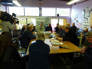 Another large group of women were in an adjacent room where they were watching proceedings on tv.