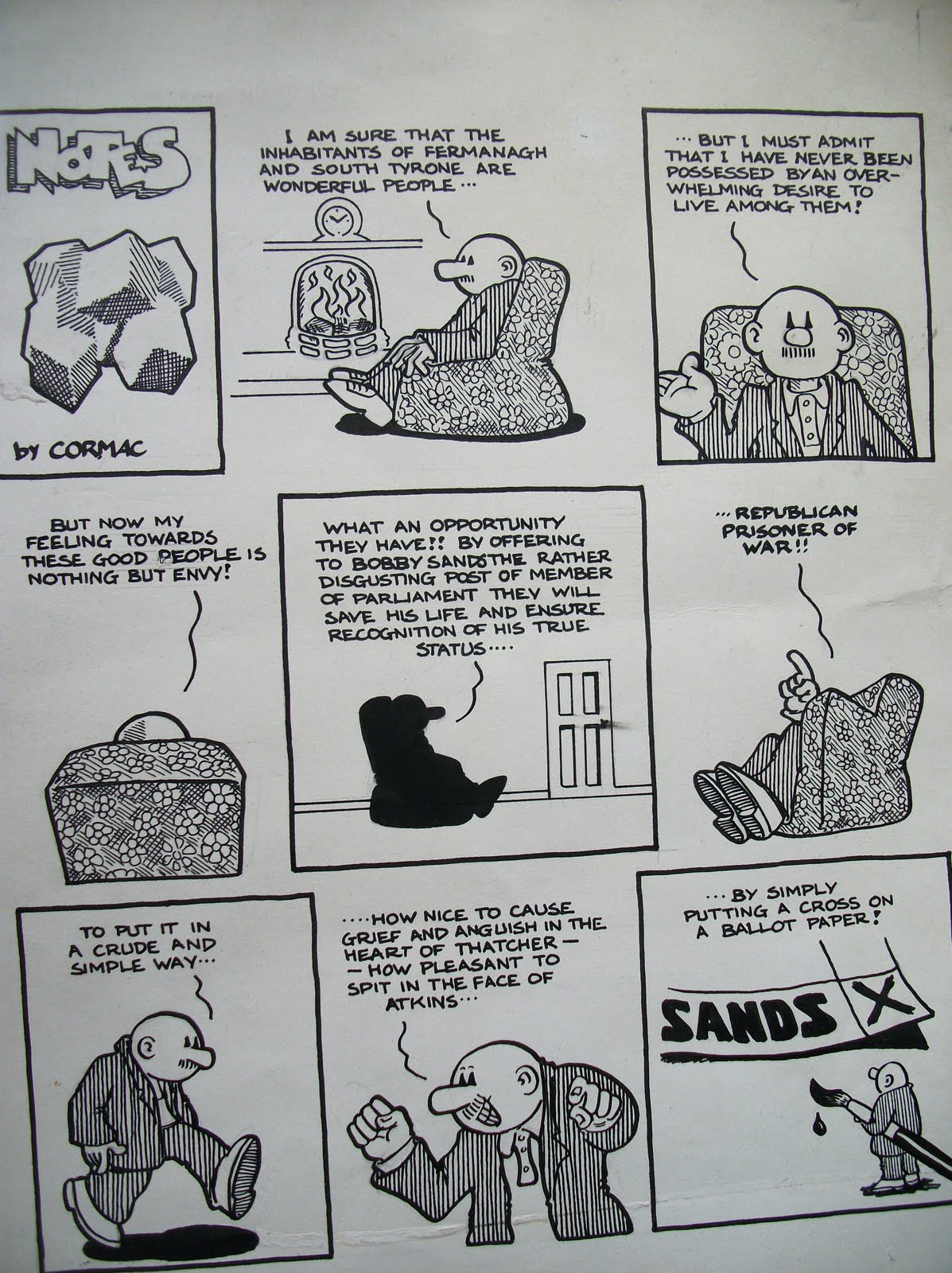 A cartoon by the late Brian 'Cormac' Moore urging people to Vote for Bobby Sands