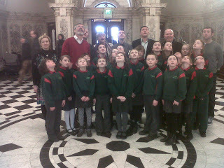 The following morning I was in Belfast City Hall where a series of events had been organised to also mark this unique celebration of the Irish language. The choir from Bunscoil Phobal Feirste on the Shaws Road in West Belfast where there and treated us to some beautifully sung songs in Irish and young people from the Meanscoil joined us later.