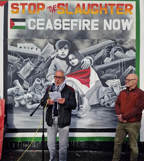 The Palestinian people of Gaza andthe west Bank are facing a second Nakba. The settler and Israeli Army violencein the west Bank, the deliberate attacks in Gaza on hospitals, schools, theUniversity, refugee camps, bakeries, ambulances and families and the cuttingoff of fuel and food and water, is about forcing Palestinians into abandoningGaza. A recent Israeli report and public commentary by Israeli leaders haveacknowledged that Israel seeks the expulsion of all Palestinians from Gaza. AnIsraeli Government minister Amichai Eliyahu has said nuking Gaza ‘is oneof the possibilities’ and in a remark reminiscent of ‘To Hell or Connacht’ that the Palestinians ‘can go to Ireland or deserts’.
