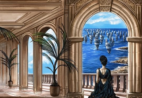 The cover shows the titular Desert Empress as she watches her own country’s military return from a decade-long war across the sea. The tone evokes a sense of foreboding and disruption. The world beyond the balcony is big and vast, while the figure inside is just one small part in it who can do nothing but watch.