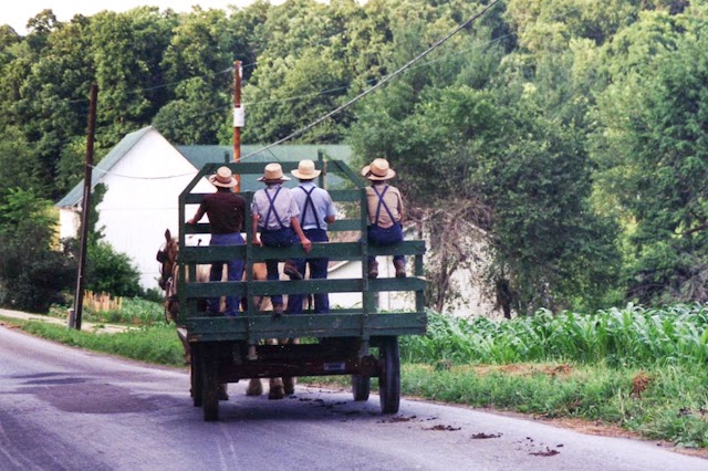 A father and three of his sons had their wagon out the other day, heading into the fields. That's a slow ride in a slow life. Maybe they are lucky. Afterall they will never spend a minute worrying about their investment portfolios. They will never be searched by airport security.