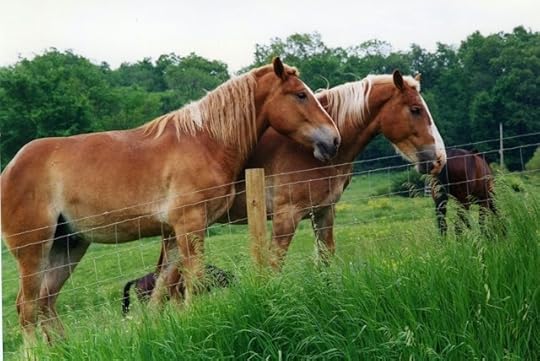 Haflingers standing in the evening sun. These Amish draft horses are a type of Avelignese, a breed originating in Austria several hundred years ago. You can get the technical details at Wikipedia, but I just like to look at the beauty of them. Amish people really know what they are doing with horses.