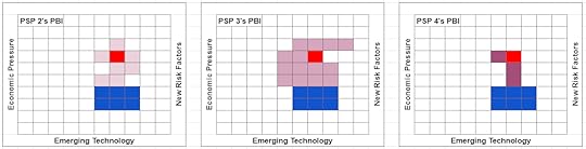 Let’s add one more dimension to the purpleness of the PBI squares, shade. The darker the squares the greater the commitment that the PSP has to the PBI.