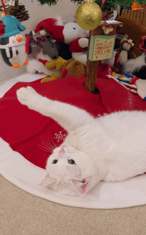 There is definitely something magical about this time of year because even my unsociable cat (that���s her on the left) joins in the fun! Under the Christmas tree is her favourite place to be ����.