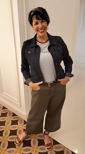 Typically, casual outfits are not elaborate; often consisting of a few pieces. This simple outfit has a top, wide-legged cropped pants and shoes..easy peasy. But, it just takes a few accessories to pull the look together…in this case, I use a belt and jewelry.