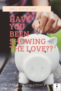 Small acts of love build strong relationships. Essentially, small acts of love build a sense of trust and validation. The best illustration I have heard on this concept is the love bank. Banks are useful institutions that allow us to deposit and withdraw our money at will. Generally, we regard banks to be safe places. We trust them to guard and protect our money.