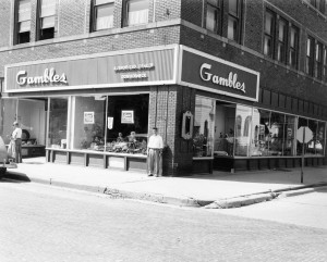 In Ice Cream Headache, I wrote that the dairy bar had once been a grocery store. Well, I used up some of my poetic/artistic freedom with that one. The building used to be Gambles Department Store.