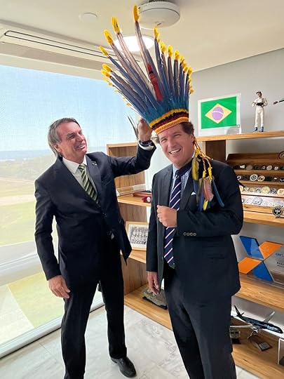 - Recebi hoje, no Palácio do Alvorada, o jornalista americano @TuckerCarlson , apresentador do programa jornalístico de maior audiência dos EUA. Mostramos ao mundo a verdade sobre o Brasil, sobre o nosso governo e tenho certeza que mais uma vez a verdade irá nos libertar.