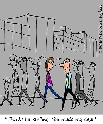She mentioned that she does that same thing at work. As she walks by a colleague, she always smiles. She almost always gets a friendly smile back.