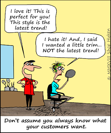 Operating based on personal assumptions – or my personal likes and dislikes – can be dangerous. What makes me happy or upset may not be in sync with how my customers feel. And when my assumptions don’t align with my customers’, it’s a potential customer experience disaster.