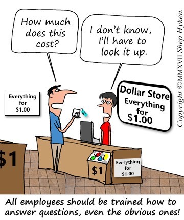 After you’ve done this and everyone is comfortable with answering those first three questions, come up with three more popular questions and properly train how to answer them. Do this as often as needed, for all your most frequently asked questions. Everyone should know how to answer these questions properly and with consistency, from one employee to the next.
