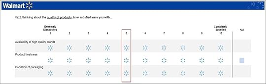 Faulty Scales—Wal-Mart asked its questions on a 1-10 scale. This scale introduces two problems: first, there is an even number of selections and therefore no true midpoint: