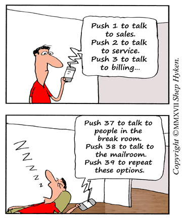 The point of this is to make you think about the effort a customer – or anyone else – must make to reach someone in your company. It may sound like I’m against a computer answering a phone. No, that’s not the case. I’m against a computer – or a person – answering the phone if it creates any amount of difficulty for the person calling in. By the way, I also understand that an assistant must also be a gatekeeper whose job is to screen calls. Just handle the call well, with respect and diplomacy. Any friction or extra effort the customer goes through to reach their party starts the call at a deficit. The first impression of that interaction is ruined.