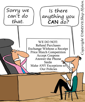 So, here is the lesson: Every company must stay within the law. Some industries are heavily regulated and must adhere to compliance and tough rules that they have no control over, and many of these rules or laws are not customer friendly.