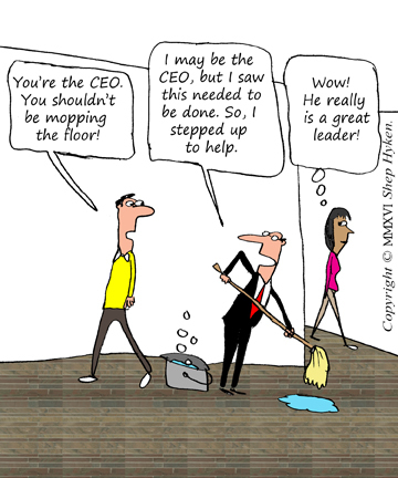 Now wiping the floor wasn’t Kevin’s job, but it was the right thing to do, and he did it. That’s why he’s moving up in the organization. He’s a leader because he inherently knows what is right, and he acts on it.