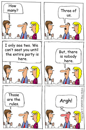 I’m sorry. We can’t seat you until your entire party is here.