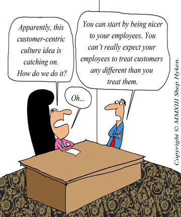 How do you create a customer-centric culture? Start on the inside, with employees. I’ve written and blogged a lot about this, and if this subject is important to you, I hope you’ll read some of the articles on CustomerServiceBlog.com. In the meantime, here is a list that will help you create a customer-centric culture: