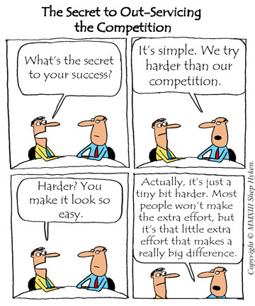 Sometimes the difference between a good company and a great company is the smallest amount of extra effort they, which means their employees, do for the customer.