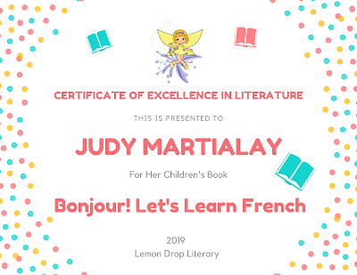 Congratulations, Judy Martialay! In my humble opinion, Bonjour! Let’s Learn French, has met all of the criteria to earn a place on my virtual classroom bookshelf!