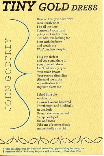 John Godfrey is the author of a number of collections, most recently Push the Mule, Private Lemonade, City of Corners, and the recent chapbook Singles and Fives. This year Lunar Chandelier will put out Tiny Gold Dress.