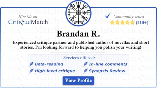 Finally, one last bit of self-promotion. Over the past week, I’ve become a freelance professional critiquer for fiction and non-fiction on the website Critique Match. If you have a story, article, or synopsis that you’re ready to have looked at with a fresh eye and different perspective, my rates are on the lower end of the freelancers and I’ve had 210+ critiques that I’ve already completed on the platform with 5-star reviews. Check me out with the link below, there’s even documents showcasing my critique/edit style!