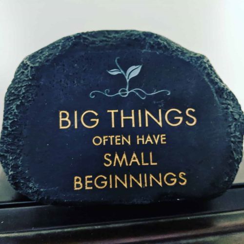 I got this stone as a gift. It’s to help me remember that it’s okay that my writing starts small. #writersofinstagram #writingcommunity #amwriting