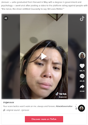That old Hee Haw TV show song could be the new theme song for a Harvard student, Claira Janover, who this past week posted a Tik Tok video of herself ranting against anyone who dared to say that all lives matter. It was obviously her higher educational way of supporting Black Lives Matter, and protesting against systemic racism. She failed.