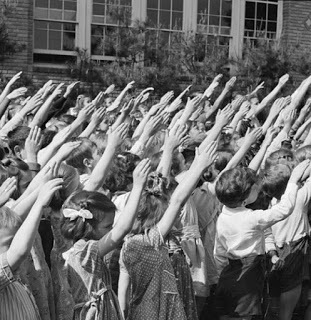 Speaking of the salute to the Pledge, the original Bellamy Salute is a long suppressed memory of what school kids and adults use to use to show love for country when reciting the Pledge of Allegiance. It’s illustrated below in the breathtaking images found online. Heil Amerikka!