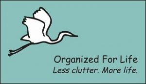 AFTER: The egret taking flight logo and tag line encourage you to rise above your clutter and find the freedom of getting Organized for Life.
