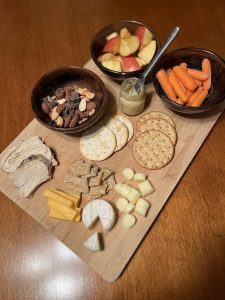 Compare notes on what we accomplished that day. No need to dwell on what we did not accomplish.Our lists course-corrected naturally as we went along. And we weren’t working on things that required in-depth coaching.Watch up to 4 episodes of a TV show we’d picked together.We chose A Discovery of Witches on Netflix (and we finished, and enjoyed, all 3 seasons), but it could have been anything. A few previous favorites have been Deadwood, The L Word, Shameless, and Alone.Eat dinner.Sometimes we coordinated what we were eating, and sometimes we didn’t. For example, one night we both made snack boards and another night we both ordered Thai.