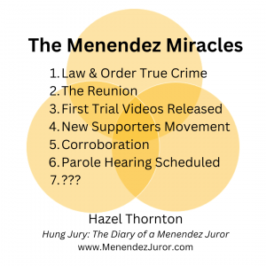And now we have Menendez Miracle #6:Parole Hearing ScheduledLast week, after yet another lengthy, unnecessary, prejudicial, and error-filled press conference by DA Hochman, Governor Newsom announced that he has set a hearing date for the brothers before the parole board. He had already ordered a risk assessment to assist him in considering clemency, which would also be part of a parole process should they be resentenced.