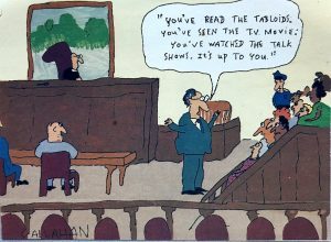 And here are some cartoons by John Callahan that were published in the Los Angeles Times during the first Menendez trial. I licensed one of them for my use in 1994, and was sent several others in the bargain: Callahan Courtroom Cartoons