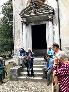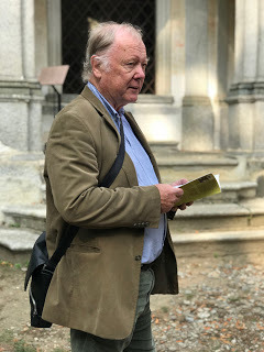 Christopher North reads on the itinerant walk around the Sacro Monte.
