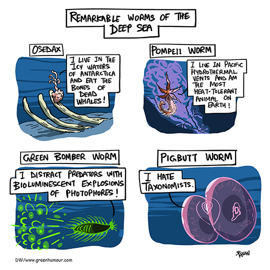 Deep sea worms are among nature's most enigmatic and mysterious creatures, so what if some of them are a bit awkwardly shaped? Comic for DW Environment.
