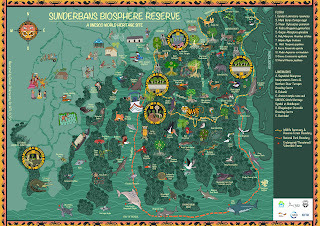 The map has been commissioned by the Wildlife Trust of India, and is on display at the Sunderbans' mangrove interpretation centre at Sajnekhali. By special arrangement, prints of the map are also available via my Happywagon webstore here, shipped both in India and abroad.