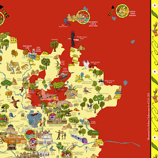 The illustration, that pays tribute to Cheriyal painting, was done in 2021 for ICLEI and the Greater Hyderabad Municipal Corporation, and has recently been released and displayed. It is available as a free download on the ICLEI South Asia website. I hope that the map will be a reminder to both citizens and the government of all that Hyderabad has at stake from the pressures of unplanned development and urbanization.